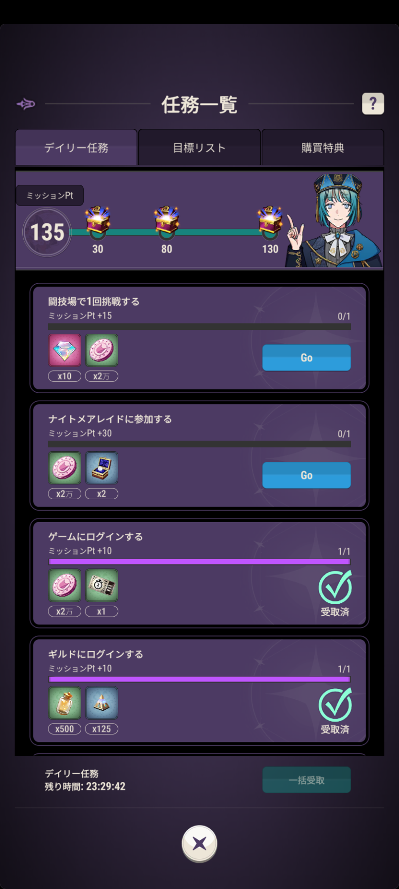 チュートリアルを完了したら貰えるので、指示に従ってチュートリアルを進めてください。その後は0時切り替え。